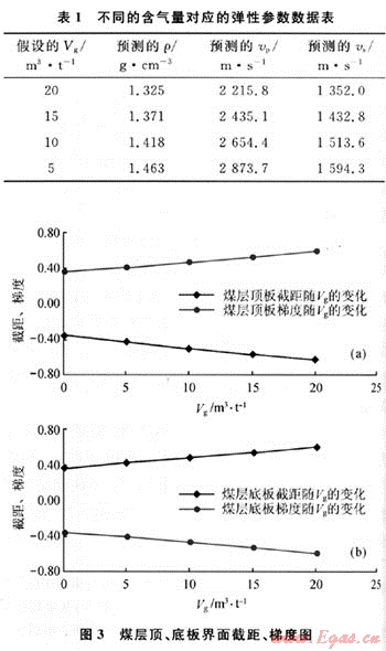 1) 煤層含氣量與彈性參數(shù)之間存在一定的線性關(guān)系,隨密度、縱波速度、橫波速度的增大而減?。幻簩託鈨?chǔ)層頂、底板反射振幅都隨偏移距增大而減小,頂板反射界面呈負(fù)截距、正梯度異常,而底板反射界面呈正截距、負(fù)梯度異常。