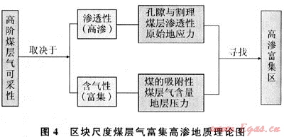 建立了沁水氣田煤層氣成藏模式,認(rèn)為本區(qū)煤層氣藏為受巖漿熱成因形成的承壓水封堵煤層氣藏,其富集程度主要受儲(chǔ)層條件和保存條件的影響;形成了區(qū)塊尺度煤層氣富集高滲地質(zhì)控制理論(圖4),認(rèn)為沁南煤層原生孔隙割理系統(tǒng)決定了煤層滲透性的大小,構(gòu)造背景和斷層發(fā)育程度明顯控制煤層含氣性;形成了5項(xiàng)配套工藝技術(shù),包括山地淺層二維地震采集和精細(xì)解釋、富集高滲區(qū)地質(zhì)預(yù)測與井位部署、羽狀水平井及配套工藝、適用性舉升工藝和智能排采控制。