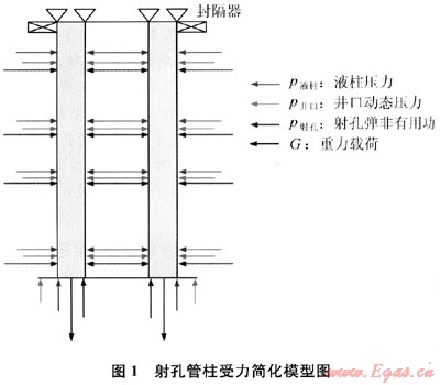 射孔沖擊載荷就是射孔瞬間在井筒內(nèi)形成的動(dòng)態(tài)壓力載荷。它跟井深、井液密度、井口壓力、封隔器下環(huán)空空間、井底口袋長(zhǎng)度以及射孔彈做非有用功的能量(除了用于穿孔部分的能量統(tǒng)稱,占射孔彈產(chǎn)生的總能量的60%~70%)等因素密切相關(guān),這些因素都能夠?yàn)樯淇姿矐B(tài)的射孔沖擊載荷提供壓力基礎(chǔ)。