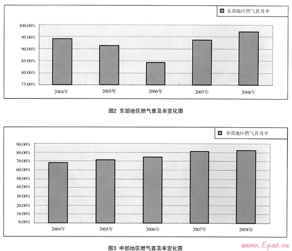 (3) 上述結(jié)論也可從以下將討論的2008年我國(guó)燃?xì)馄占奥蔬_(dá)到或超過(guò)l00%的城市狀況得出。