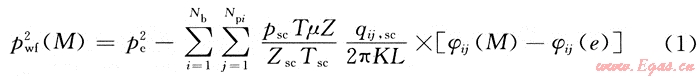 式中:qij為氣體從氣藏流入第i分支第j井段的流量;φij(M)為第i分支的第j井段在氣藏中任意點(diǎn)M處產(chǎn)生的勢。