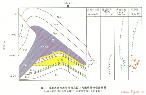抽吸效應的地質表現(xiàn)主要包括:氣藏高壓-超高壓(局部氣層壓力與深層相近)、儲層孔隙度增大、天然氣干而丙烷含量稀少、碳同位素值變重、氣藏內砂巖儲層高嶺石含量高等特征。如克拉2大氣田的天然氣儲量超過2 000×