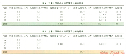 在增壓方案比選中,一般考慮集氣干線管徑、流速和壓縮機(jī)功率等因素。