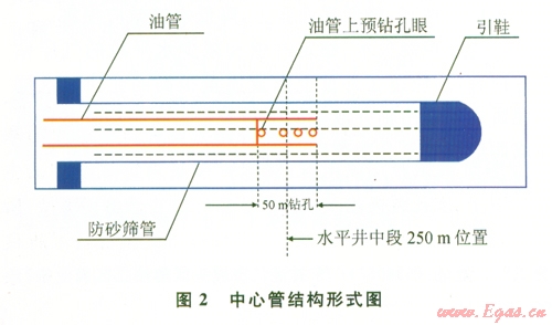 東方l-1氣田在開發(fā)時(shí)采用優(yōu)化篩管、盲管長度比例以及位置關(guān)系對水平井各段予以均衡。經(jīng)過研究,東方l-1氣田采用伸進(jìn)篩管中的油管(圖2),尾段