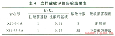 2.2 酸敏評價(jià)實(shí)驗(yàn)