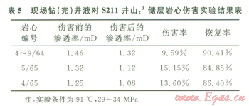 從表5中可以看出,現(xiàn)場鉆井液完井液對山23儲層傷害較低,且傷害后恢復(fù)率可達(dá)84.85%以上,這表明恢復(fù)性良好,具有很好的暫堵保護(hù)作用,兩口井試產(chǎn)都獲高產(chǎn)。