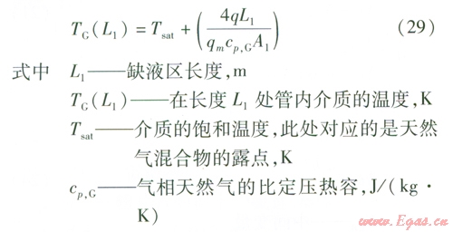 由于LNG是多元組分混合物,而混合物的沸騰換熱很復(fù)雜,因而是較難處理的,目前對(duì)二元混合物有一些沸騰傳熱系數(shù)的計(jì)算公式,但其中均含有與特定二元物質(zhì)組合有關(guān)的實(shí)驗(yàn)系數(shù),其流動(dòng)換熱關(guān)系式不能直接應(yīng)用于本課題的LNG介質(zhì)。因此,本文在進(jìn)行兩相區(qū)的換熱計(jì)算時(shí),采用簡(jiǎn)化假設(shè)。由于LNG中甲烷的摩爾分?jǐn)?shù)高達(dá)90%以上,故將此區(qū)的LNG看作甲烷。將兩相區(qū)分為流動(dòng)沸騰區(qū)和缺液區(qū),在流動(dòng)沸騰區(qū)溫度保持泡點(diǎn)不變,在缺液區(qū)溫度由泡點(diǎn)升高至露點(diǎn)。