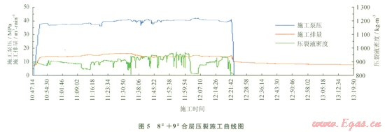 根據(jù)式(3)得出此時總孔眼摩阻為△Ppf2,結合式(2)、(3)、(7)求出此時施工壓力PE2為: