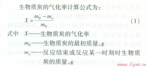 與煤焦和石油的氣化相比,針對生物質(zhì)炭與蒸汽和C02的氣化研究還比較少。通過對國內(nèi)外相關(guān)文獻的查閱可知,盡管有學者對生物質(zhì)炭在蒸汽和C02條件下的氣化特性進行了一些研究,但是研究不夠深入,且主要針對以產(chǎn)氣為目的的生物質(zhì)炭完全氣化過程,而對于生物質(zhì)炭作為焦油催化劑時伴隨發(fā)生的氣化反應則沒有涉及[5-8]。筆者進行了生物質(zhì)炭的氣化實驗,研究內(nèi)容包括生物質(zhì)炭的氣化率和氣化氣組成變化等,為研究生物質(zhì)炭在催化重整過程中同時發(fā)生的生物質(zhì)炭氣化反應奠定了基礎(chǔ)。