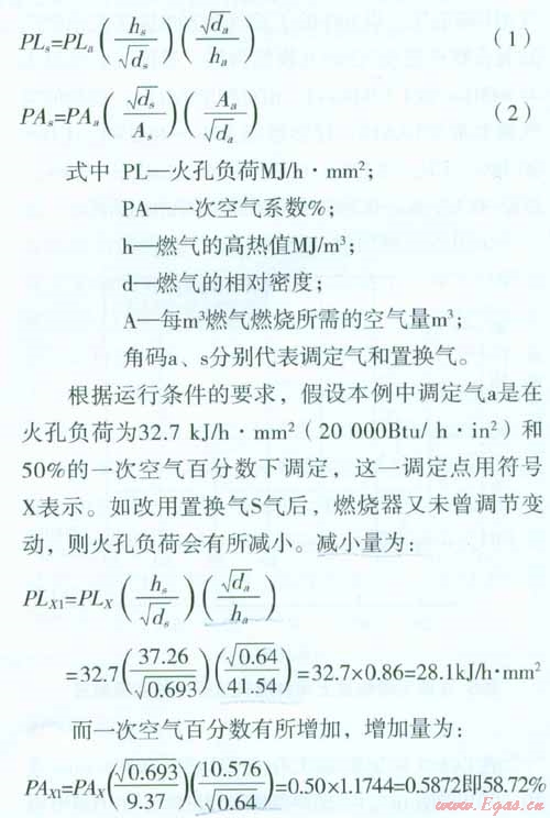 基于上述考慮,所導出的公式應能預測民用燃燒器在根據(jù)一種天然氣調(diào)定后,置換使用其他任何燃氣時的運行特性。