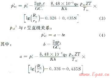 流動(dòng)物質(zhì)平衡法最大的優(yōu)點(diǎn)是可在不關(guān)井條件下,求取氣井可動(dòng)儲(chǔ)量,該方法計(jì)算的儲(chǔ)量可作為對(duì)壓降法儲(chǔ)量的檢驗(yàn)。該方法適合生產(chǎn)時(shí)間較長且工作制度穩(wěn)定的中高產(chǎn)井。
