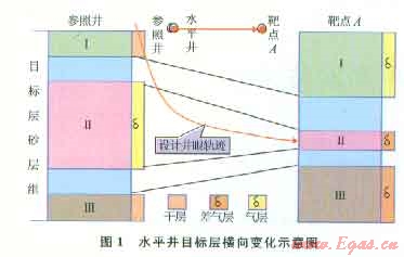 蘇里格氣田儲層非均質(zhì)性強,作為水平井目標層大多由多套含氣單砂體所組成,它們之間或由泥質(zhì)薄夾層所分隔,或由儲層物性變化所形成的致密夾層所隔離,時常遇見靶點A處目標砂層組與參照井不一樣的特殊情況,即同一單砂體厚度變薄或增厚,含氣性變差或變好,泥質(zhì)夾層變厚或減薄等。而設(shè)計一般都選擇參照井厚度大、含氣性好的單砂體作為人靶位置。如果遇見入靶點位置目標層發(fā)生較大變化,不進行調(diào)整仍按原設(shè)計靶點入靶,則存在原目標砂體相變或尖滅風險(圖1),如何保證水平井人靶是優(yōu)化的內(nèi)容之一。
