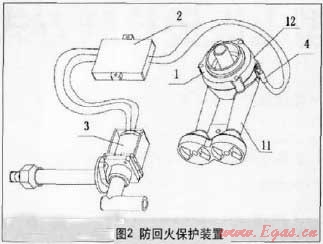 通過以上所述的排除方法,能在一定程度上減少回火的發(fā)生,但是,以上某些回火現(xiàn)象的排除,不但需要使用者具有較敏銳的觀察能力,而且同時(shí)需要使用者具備一定的專業(yè)知識(shí),一旦使用條件變化,氣源成分或燃?xì)鈮毫Φ牟▌?dòng)超過灶具的適應(yīng)范圍,回火還是會(huì)發(fā)生,調(diào)整卻很困難。因此,在使用220V交流電的氣電結(jié)合灶具和集成灶越來越廣泛的今天,為確保用戶使用安全,開發(fā)具有能主動(dòng)探測(cè)回火,自動(dòng)切斷氣源,具備主動(dòng)防回火裝置的安全型燃?xì)庠罹呔哂蟹e極的意義。