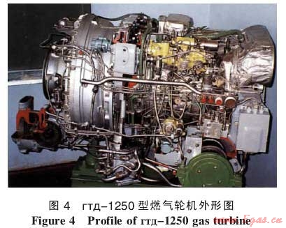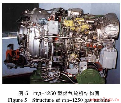 гтд-1250型燃?xì)廨啓C(jī)的外形與結(jié)構(gòu)分別見(jiàn)圖4和圖5。該機(jī)為簡(jiǎn)單循環(huán)燃?xì)廨啓C(jī),低壓壓氣機(jī)與高壓壓氣機(jī)均為單級(jí)離心式,燃燒室為回流環(huán)形,高壓渦輪、低壓渦輪與動(dòng)力渦輪均為單級(jí)軸流式。