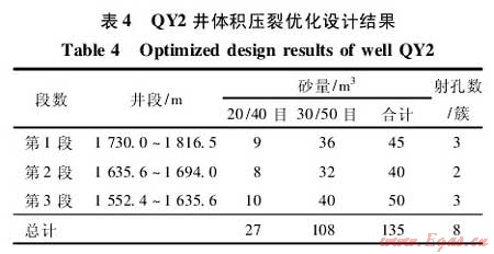 3 QY2頁巖油水平井體積壓裂設(shè)計與實施