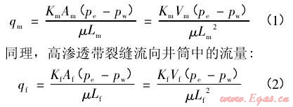 高滲透帶基質(zhì)流向井筒中的流量,由達西定律: