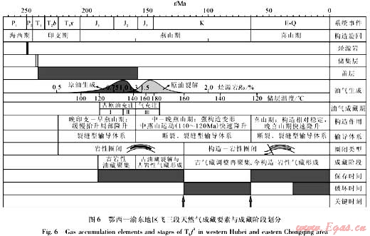 (2)鄂西—渝東地區(qū)飛三段天然氣成藏主要經歷了3個階段:早期古巖性油藏聚集階段;古油藏裂解與古巖性氣藏形成階段;天然氣調整再聚集與現(xiàn)今構造—巖性復合氣藏形成階段。