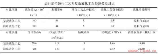 David Franklin等[4]對(duì) FLNG 采用簡(jiǎn)單液化工藝和復(fù)雜液化工藝的經(jīng)濟(jì)效益進(jìn)行比較,發(fā)現(xiàn)采用簡(jiǎn)單液化工藝效益更好(表3),液化能力同為100×104t·a-1的浮式天然氣液化裝置項(xiàng)目,采用簡(jiǎn)單液化工藝的凈現(xiàn)值是采用復(fù)雜液化工藝凈現(xiàn)值的1.69倍,內(nèi)部收益率高出3.2%。可見,與陸上 LNG工廠不同,FLNG 對(duì)初始投資更敏感。簡(jiǎn)單液化工藝具有占用甲板面積小、設(shè)備少、檢修時(shí)間短、可在有限甲板空間上獲得較高產(chǎn)量等優(yōu)點(diǎn),更適用于 FLNG。