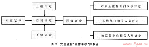 1) 安全監(jiān)督考核的實(shí)施應(yīng)遵循如下步驟:建立一個(gè)科學(xué)的考核機(jī)構(gòu),多方收集信息;進(jìn)行“立體考核”,上級(jí)評(píng)定安全監(jiān)督“立體考核”體系(見圖2)。