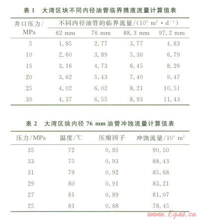 采用節(jié)點(diǎn)分析方法,結(jié)合臨界攜液流量(表1)、沖蝕流量(表2)的計(jì)算,考慮酸壓施工的排量要求和力學(xué)性能分析,選擇ø