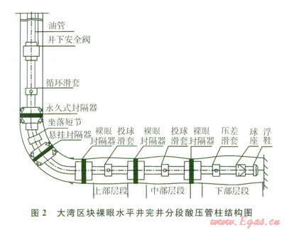 1)一次管柱多級(jí)卡封、逐級(jí)投球打開(kāi)各層滑套改造儲(chǔ)層的水平井分段完井方式可用于類(lèi)似大灣區(qū)塊高壓、高產(chǎn)、高酸性天然氣井的完井投產(chǎn)。
