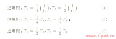 式中的T1和T2可以按照爆距來確定。