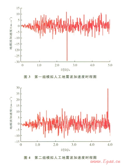 日前反應(yīng)譜理論在結(jié)構(gòu)工程抗震設(shè)計中己被廣泛應(yīng)用,國內(nèi)工程爆破界早已將反應(yīng)譜理論引入到爆破地震動的研究中來,并根據(jù)不同類型的許多爆破地震實(shí)測數(shù)據(jù),通過計算作出了抗震設(shè)計反應(yīng)譜,把期望反應(yīng)譜作為目標(biāo)譜基于SIMQKE-GR程序設(shè)定不同的場地參數(shù),從而獲得地震加速度波形。假定地震基本烈度為8度,場地土為Ⅲ類條件下,通過設(shè)定目標(biāo)反應(yīng)譜構(gòu)成人工模擬地震波?;厩闆r如下:地面運(yùn)動最大加速度最大值為