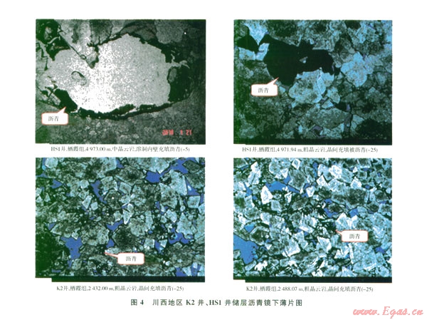 國內(nèi)外的油氣勘探實(shí)踐表明,當(dāng)儲層中有瀝青時,含瀝青的儲層喉道大小明顯比不含瀝青的儲層小。雖然儲層瀝青未使孔隙體積明顯減小。但會堵塞喉道而使?jié)B透率大大降低,同時使儲層的非均質(zhì)性增強(qiáng)。
