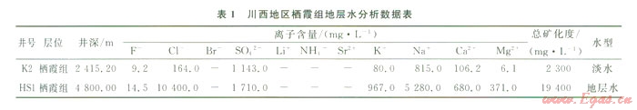 按導(dǎo)電機(jī)理的不同,巖石可分成兩大類,離子導(dǎo)電的巖石和電子導(dǎo)電的巖石,前者主要靠連通孔隙中所含的溶液的正負(fù)離子導(dǎo)電;后者靠組成巖石顆粒本身的自由電子導(dǎo)電。高阻水層的形成主要受宏觀地質(zhì)背景、微觀孔隙結(jié)構(gòu)、孔隙充填物以及流體性質(zhì)等因素的影響。從電性特征看,川西南部的漢深l井與川西北部的礦2井電阻率都較高,根據(jù)該區(qū)岡版解釋儲層流體具有典型的氣層特征,但測試結(jié)果卻與測井解釋存在著較大差異,兩口井均產(chǎn)水。從其水化學(xué)分析結(jié)果看,兩者水的性質(zhì)也存在較大差異,從K2井水分析資料來看:Cl-含量僅l 64 mg/L,反映地層水為低礦化度的NaHC03型淡水,而HS1井則為高礦化度的CaCl2型地層水(表1)。雖然兩者都產(chǎn)水,但是由于其水的性質(zhì)不同,因而兩者代表著不同的成藏過程和地質(zhì)意義。下面分別分析高阻水層的成因。