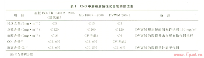 1)所謂“潛在的”含義是“在沒有液相水存在的條件下,這些化合物均無腐蝕性”。因而新版ISO/TR 15403-2-2006制訂CNV質(zhì)量控制指標的基本前提是:必須深度脫水以防止CNG在加氣過程及使用過程中形成液相水。