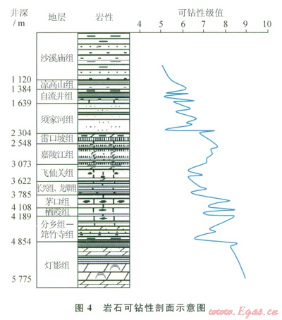 四川盆地深井—超深井鉆井提速一直是制約天然氣勘探開發(fā)的難題,氣體欠平衡鉆井、PDC鉆頭的應(yīng)用一定程度提高了深井鉆井速度,但還不能滿足國家經(jīng)濟(jì)發(fā)展對天然氣勘探開發(fā)的形勢和要求。而四川中部地區(qū)的樂山 龍女寺古隆起儲層埋藏深,垂直井深超過5000m,鉆遇地層類型多,巖性復(fù)雜,提高鉆井速度遇到以下4個(gè)方面的工程地質(zhì)難點(diǎn)。