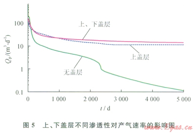 1.5 上、下蓋層滲透性對(duì)產(chǎn)氣潛力的影響