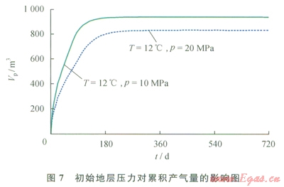 1.7 初始地層壓力對(duì)產(chǎn)氣潛力的影響