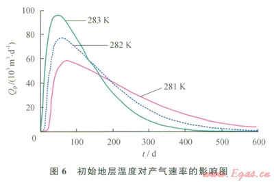 1.6 初始地層溫度對(duì)產(chǎn)氣潛力的影響