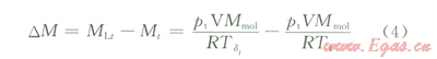 根據(jù)理想氣體狀態(tài)方程pV=nRT可變形為M=pVMmol/RT,得到DM與儲罐溫度的關系式: