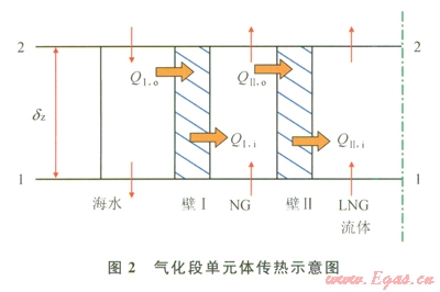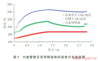 5)進(jìn)人環(huán)狀間隙的LNG在進(jìn)入瞬間即開始?xì)饣?,?nèi)套管中的LNG離開氣化段時(shí)剛好被全部氣化。