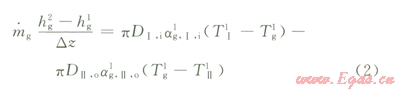 式中下標(biāo)mg代表該段的NG氣體,wall代表管壁,o代表管外側(cè),i表示管內(nèi)側(cè),其余同上。