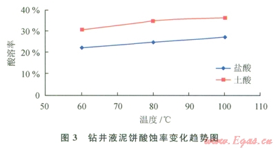 利用酸與巖屑及鉆井液中酸溶性成分反應(yīng)生成可溶性鹽類的原理,用適當(dāng)濃度的酸液溶蝕卡住鉆具的巖屑或泥餅,達(dá)到解卡的目的。圖1、2、3分別是巖屑、鉆井液泥餅的酸溶評價實驗。