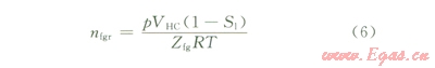 經(jīng)歷開采過程中水體與束縛水的膨脹以及地層水的產(chǎn)出之后,剩余水溶氣摩爾量為: