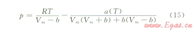 天然氣在地層水中的溶解度受到溫度、壓力、地層水礦化度以及天然氣組成等因素的影響[7-9]。由于天然氣在水中的溶解屬氣液平衡問題,溶解度除通過實(shí)驗(yàn)測定外,也可根據(jù)相平衡原理進(jìn)行計(jì)算。對于地層條件下的高壓相平衡問題,可采用狀態(tài)方程法。廣泛使用的PR狀態(tài)方程[10]形式為: