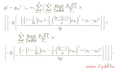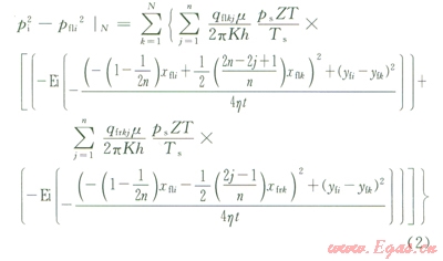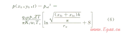 由于水力裂縫的產(chǎn)生,使得地層壓力重新分布。使得地層壓力重新分布。假設第i條裂縫的左翼和右翼的縫端壓力分別為pflj和pfri。則t時刻可得第i條裂縫的左翼尖端產(chǎn)生的壓降為: