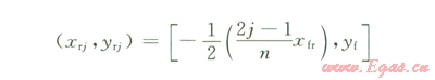 同理,其右翼裂縫上的第J個點匯的坐標可以表示為: