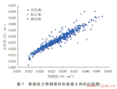 仔細(xì)研究所獲結(jié)果,可以發(fā)現(xiàn)“訓(xùn)練”集的相對(duì)誤差總是小于“驗(yàn)證”集或“測(cè)試”集的相對(duì)誤差,這主要是因?yàn)?ldquo;驗(yàn)證”集或“測(cè)試”集對(duì)ANN的訓(xùn)練方式?jīng)]有直接影響。因此,對(duì)人工神經(jīng)網(wǎng)絡(luò)進(jìn)行了修正,使其更適合于“訓(xùn)練”集的數(shù)據(jù)。可以把訓(xùn)練過(guò)程想象為找出方程組的待定系數(shù)。