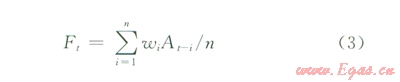 式中A為利用加權(quán)算術(shù)平均法得到的預(yù)測(cè)值;Ai為第i個(gè)歷史值,1≤i≤n;wi為第i個(gè)歷史值權(quán)重值。