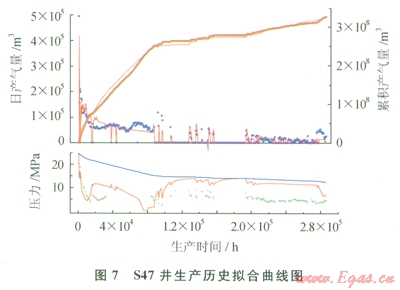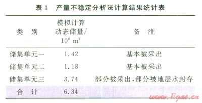 通過前面典型曲線和生產(chǎn)歷史擬合分析,最終確定S47井裂縫系統(tǒng)動態(tài)儲量為6.34×l08m3;(表1)。在儲量模擬計算過程中,可以發(fā)現(xiàn)儲集單元一和儲集單元二的儲量基本被采出,而由于地層水侵的影響,儲集單元三僅部分儲量被采出,絕大部分儲量被地層水封存,是氣藏下一步進(jìn)行挖潛的主要目標(biāo)。