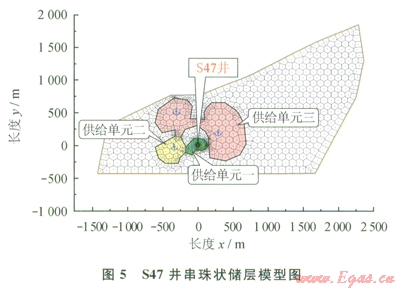 綜合地質(zhì)、生產(chǎn)動態(tài)以及典型曲線特征分析,診斷S47井裂縫系統(tǒng)存在3個儲集體,可以采用串珠狀儲層模型進(jìn)行動態(tài)儲量計算分析。