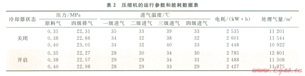1)在分析現有CNG壓縮機工藝與理論的基礎上,提出了通過降低壓縮機級間溫度與含液量來提高壓縮機效率,達到了節(jié)能降耗的目的。