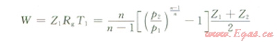 式中W為單位質量天然氣的理論壓縮功,kJ/kg;Z1、Z2為進、排氣壓力下的氣體壓縮性系數;Rg為氣體常數,kJ/(kg·K);T1為壓縮缸進氣溫度,K;n為壓縮過程多變指數;P1、P2為壓縮缸進、排氣壓力,MPa。