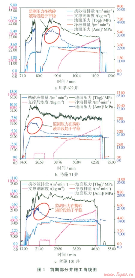 2)防水鎖壓裂液、小排量起裂、段塞優(yōu)化技術(shù),配套纖維網(wǎng)絡(luò)加砂、液氮全程伴注及強(qiáng)制裂縫閉合高效返排工藝,有效解決了什邡氣田加砂壓裂過(guò)程中存在的監(jiān)測(cè)壓力波動(dòng)大、增產(chǎn)效果差等問(wèn)題。