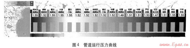 對(duì)于單條高壓管道,能夠看到該管道的準(zhǔn)確路徑、沿途的經(jīng)濟(jì)區(qū)域分布、沿線標(biāo)識(shí)球里程碑等標(biāo)識(shí)點(diǎn)的地理信息、閥室和廠站的位置及工藝、管道穿越的位置和剖面示意圖,以及管道運(yùn)行數(shù)據(jù)和狀態(tài)。